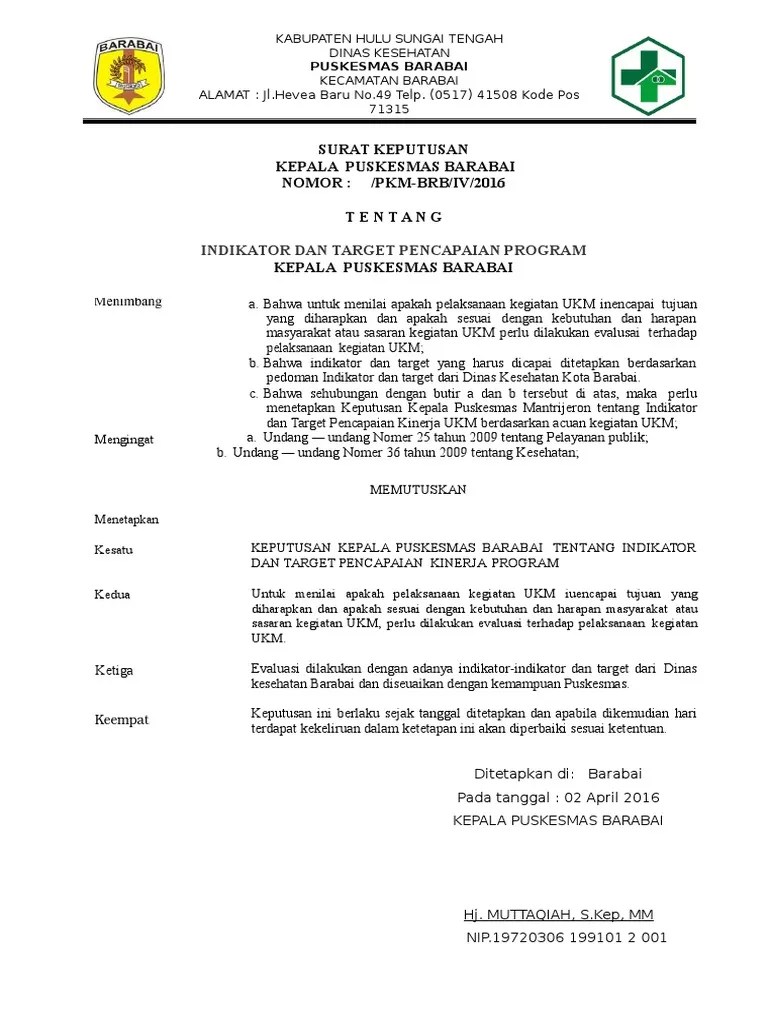 Contoh Sk Pengangkatan Kepala Puskesmas - Contoh Surat Keputusan Pengangkatan Kepala Sekolah Oleh Yayasan Download Contoh Surat Terlengkap 2020 - Alamat, dan kategori puskesmas, kepala dinas kesehatan daerah kabupaten/kota harus melaporkan.